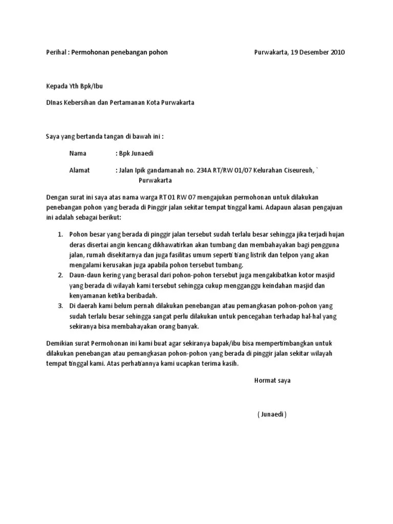 Surat permohonan penebangan pohon ke dinas pertamanan contoh seputar surat.